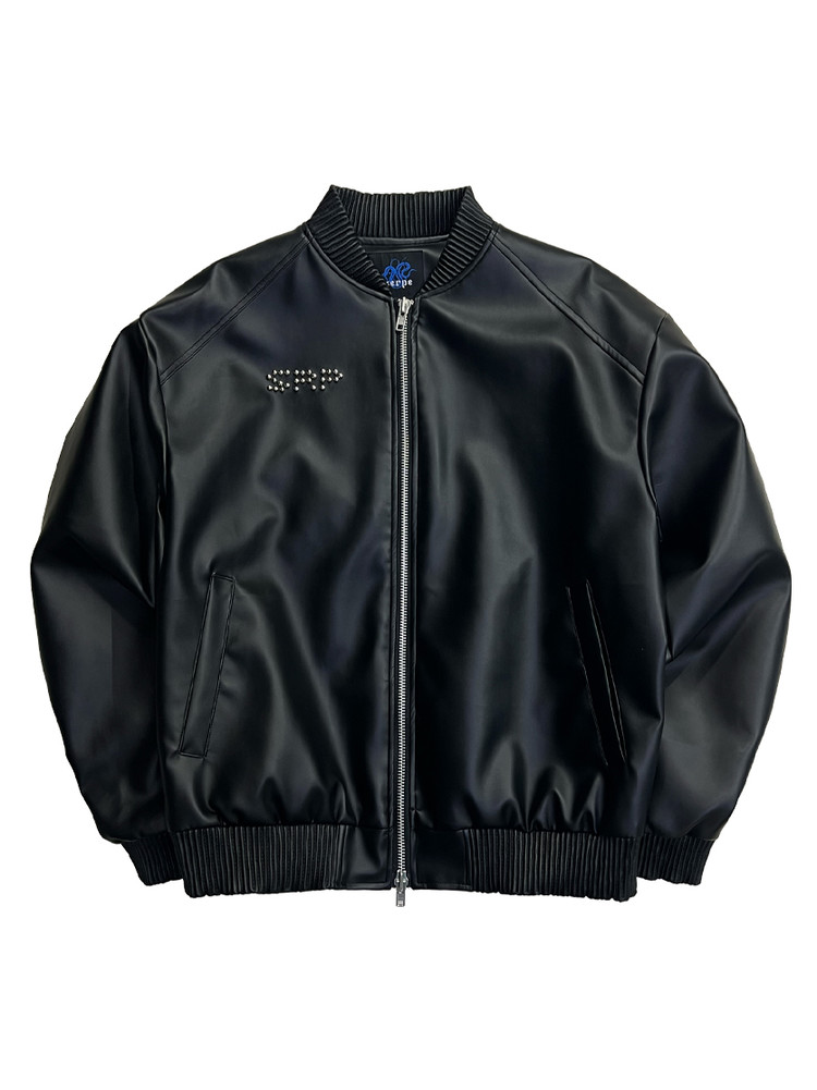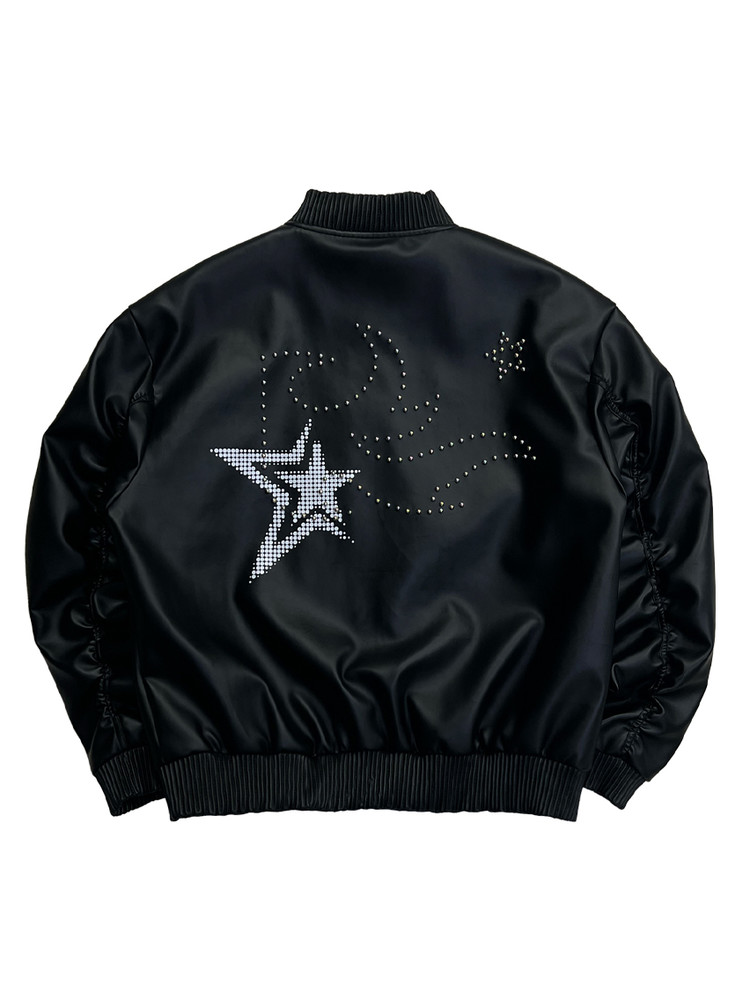 Flame Stars Stud Bomber Vegan Leather Jacket