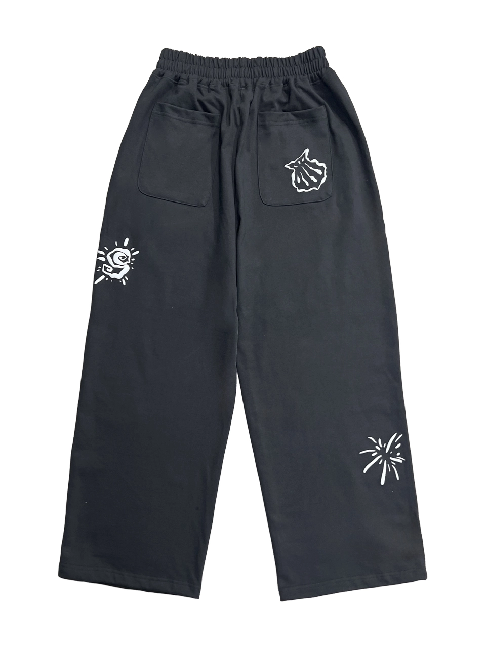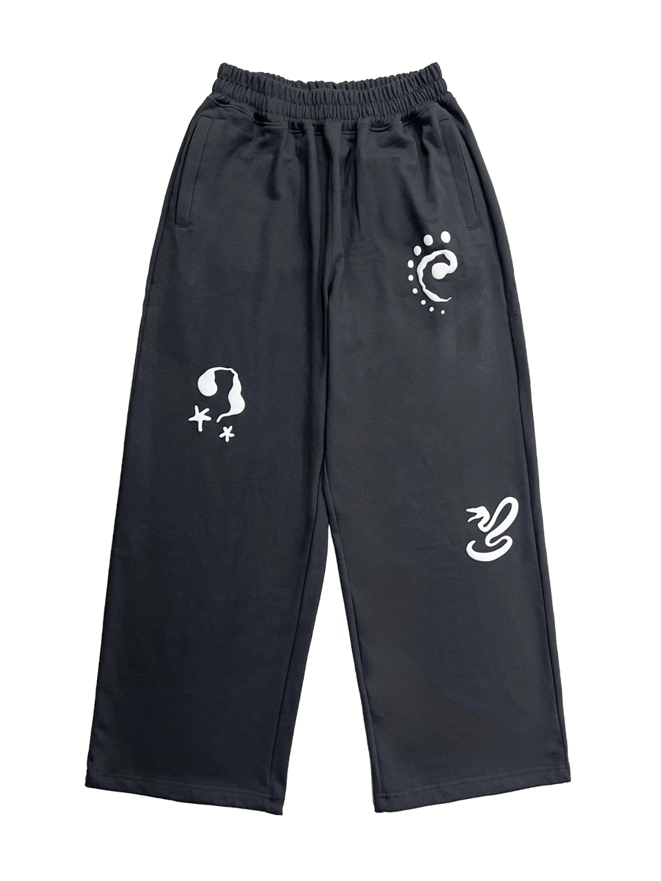 Palm Tree Applique Bermuda Sweat Pants Melange Grey