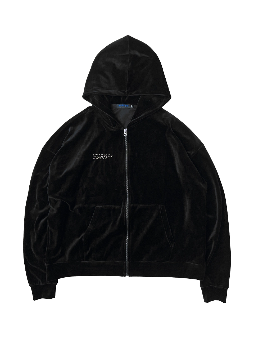 Stud Velvet Crop Hoodie Zip Up Puma Black