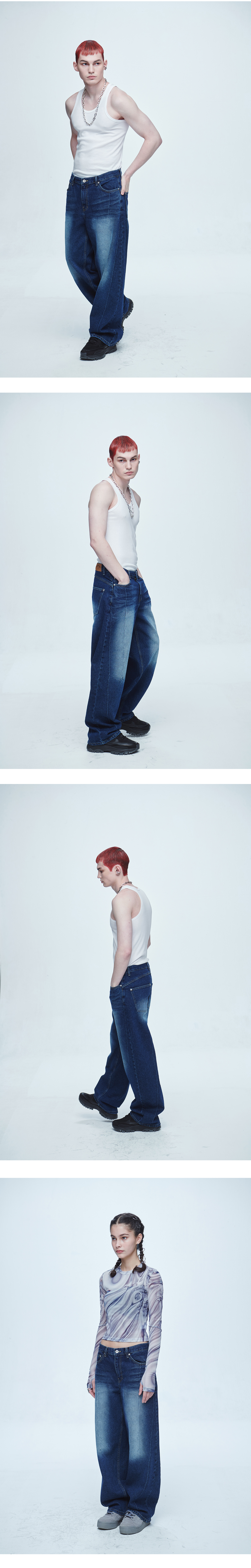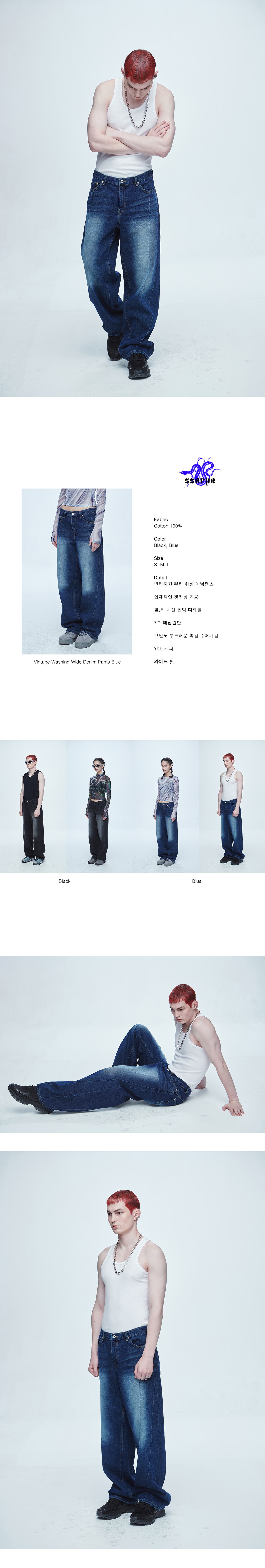 빈티지한 컬러 워싱 데님팬츠