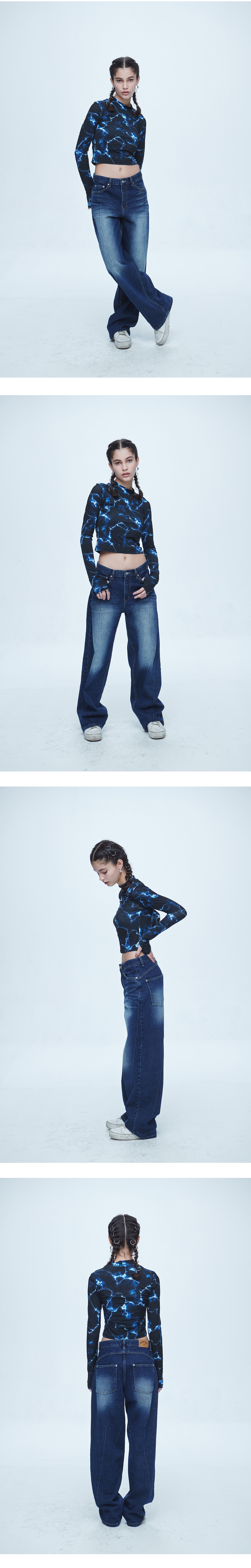 Vintage Washing Wide Denim Pants Blue