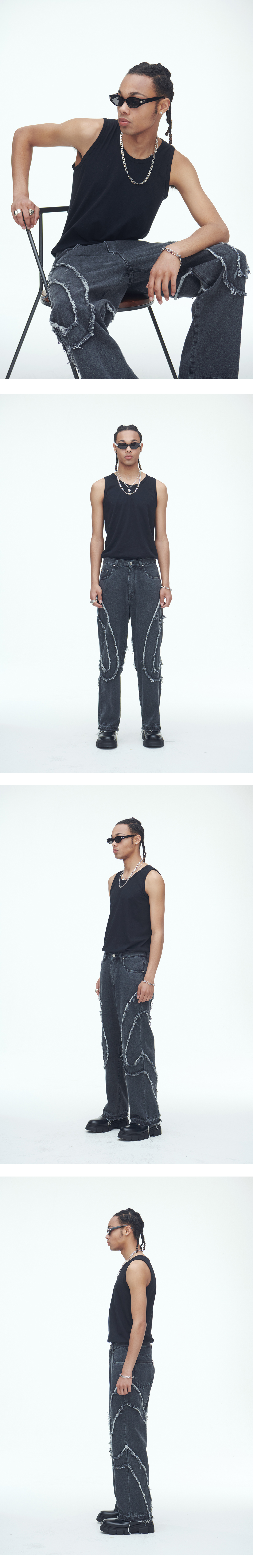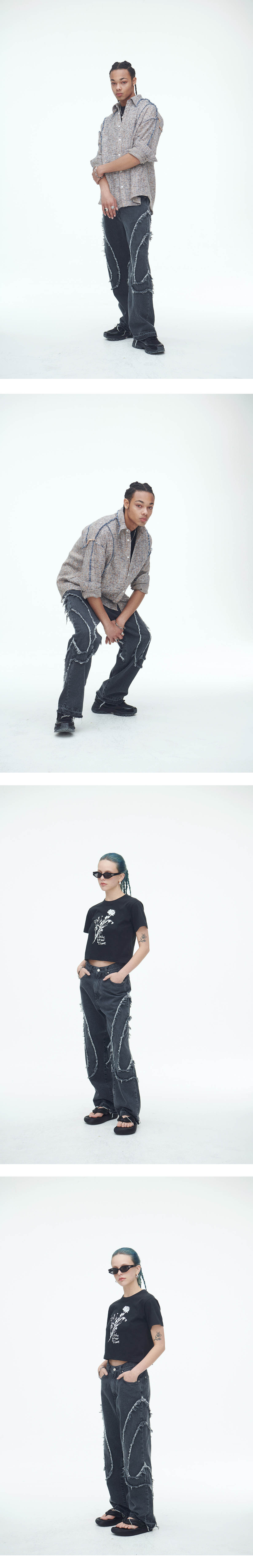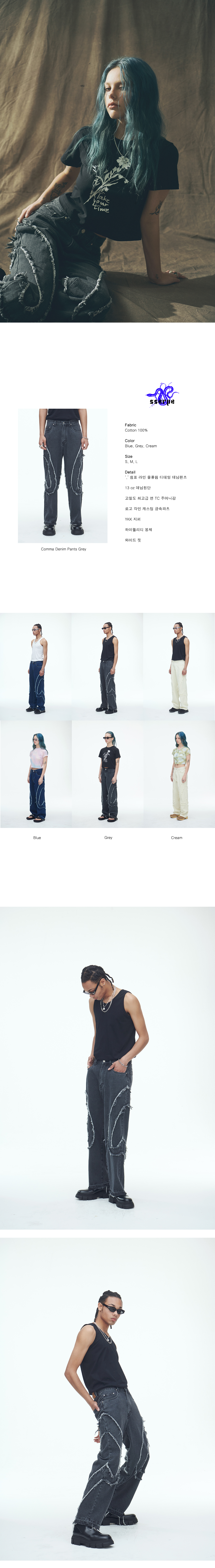 ',' 쉼표 라인 올풀림 디테일 데님팬츠