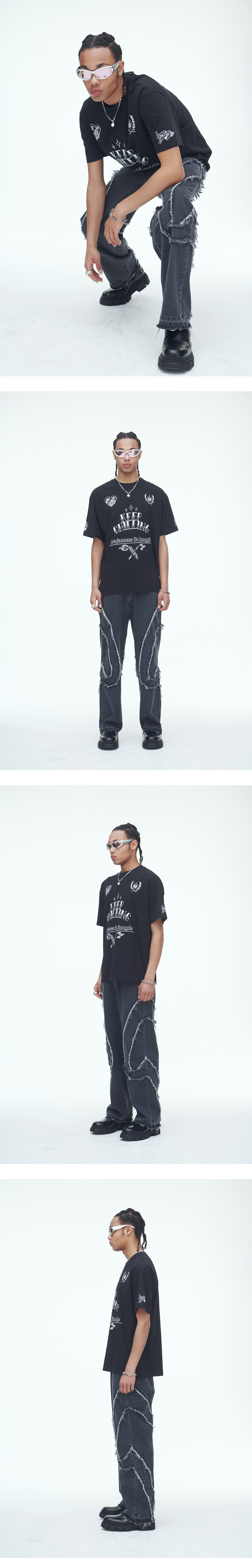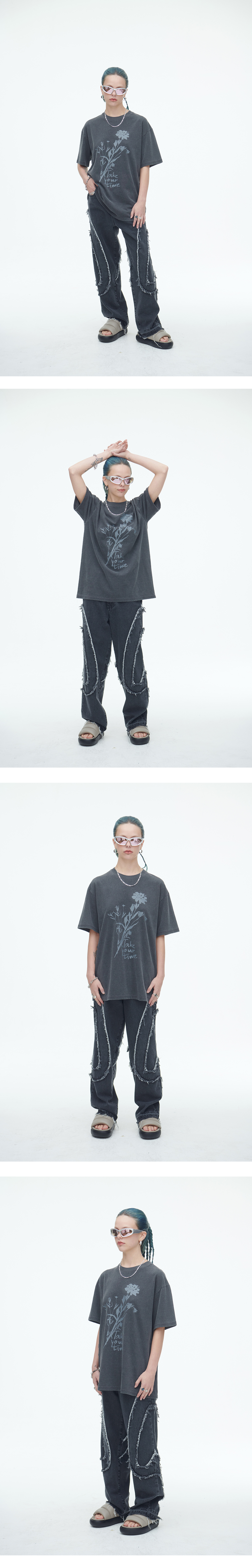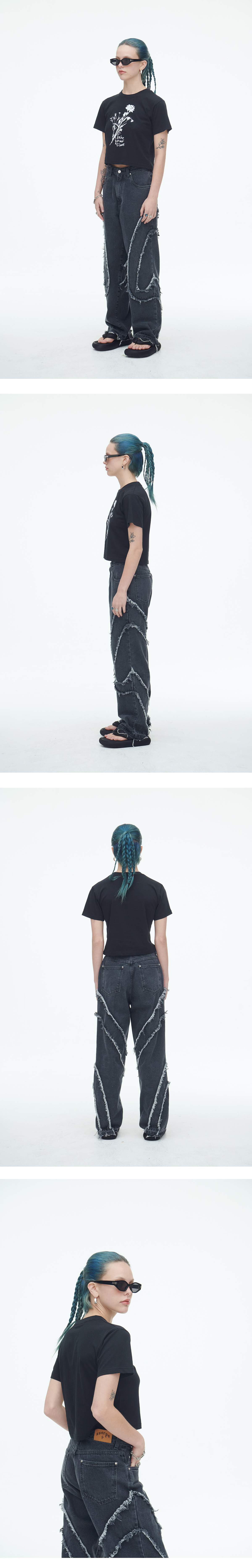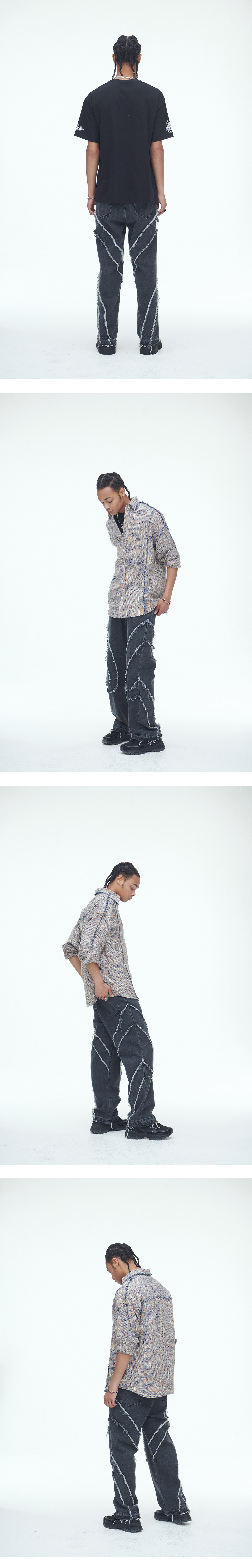 ',' 쉼표 라인 올풀림 디테일 데님팬츠