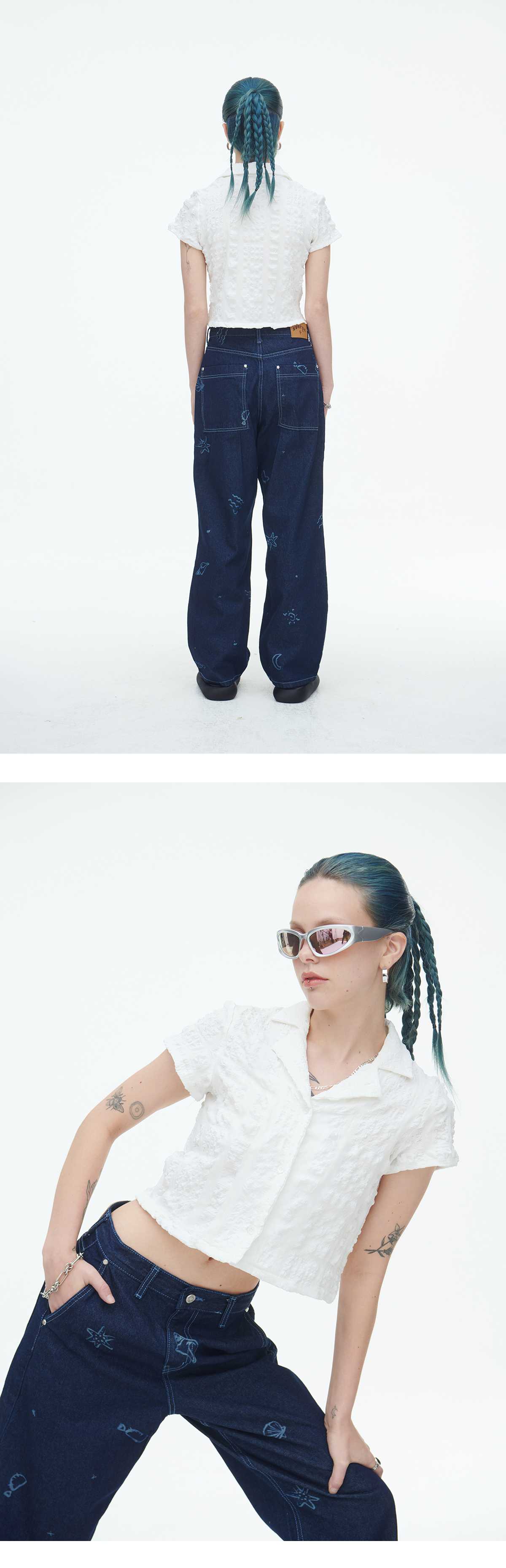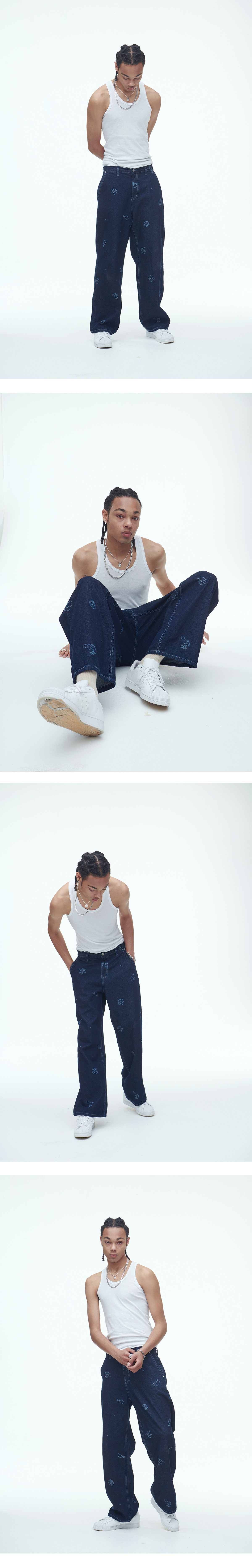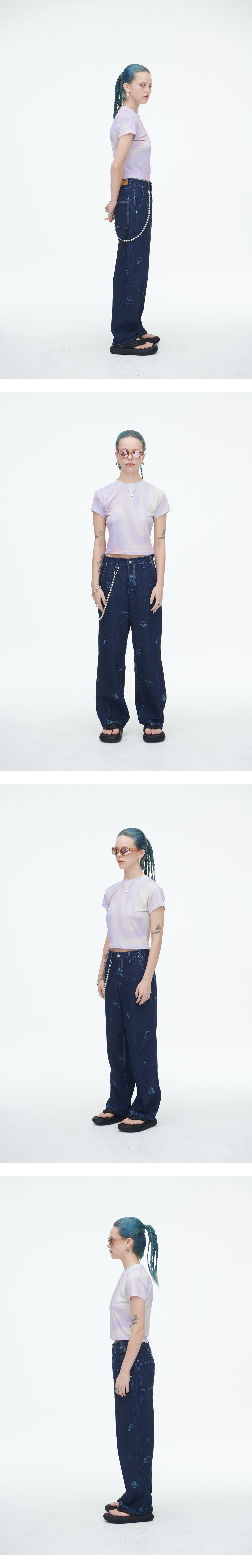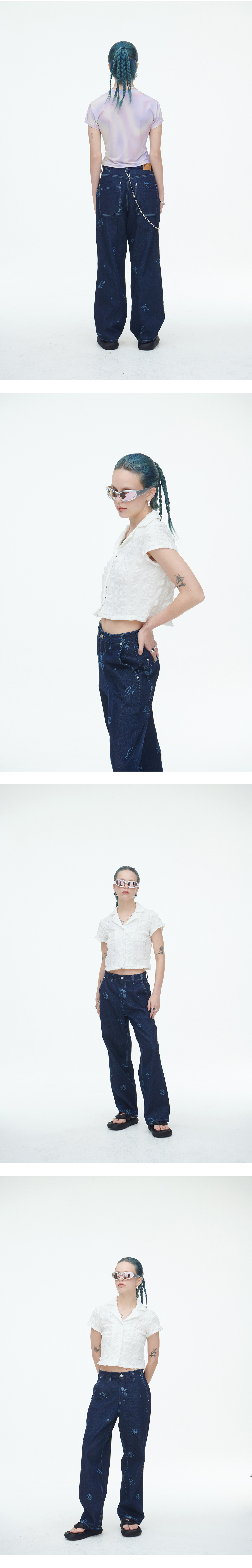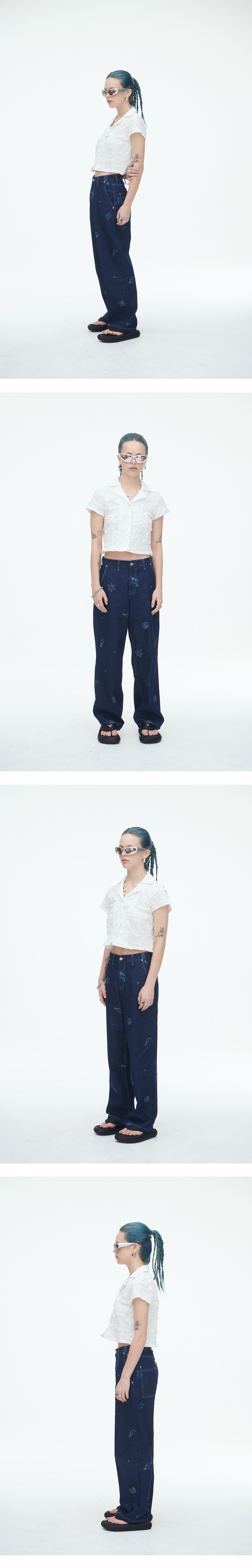 제주 해변의 풍경을 담은 데님팬츠