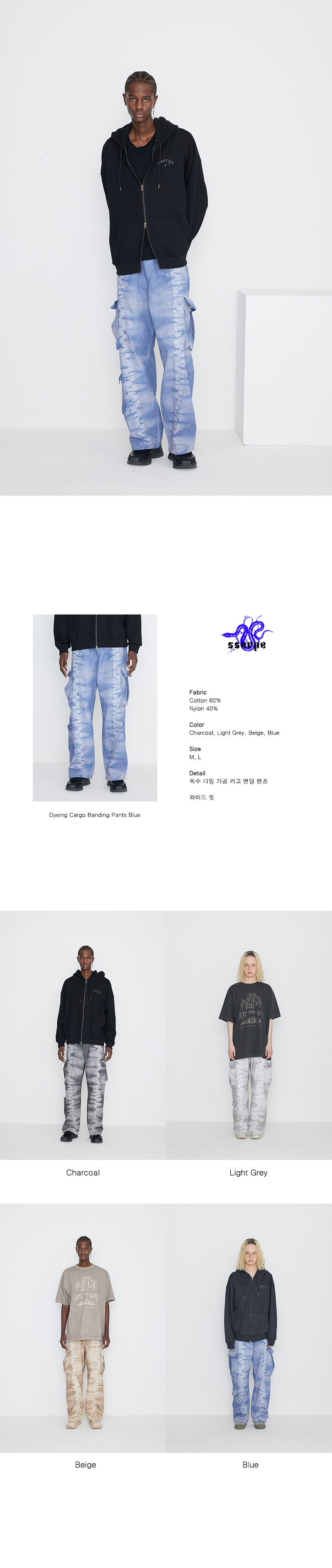 특수 다잉 가공 카고 밴딩 팬츠
