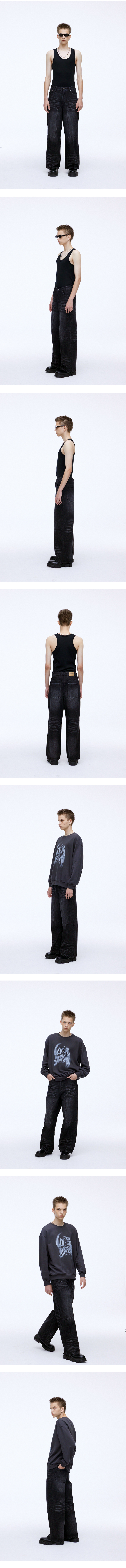 카펜터 무릎 덧단 디테일 데님 팬츠