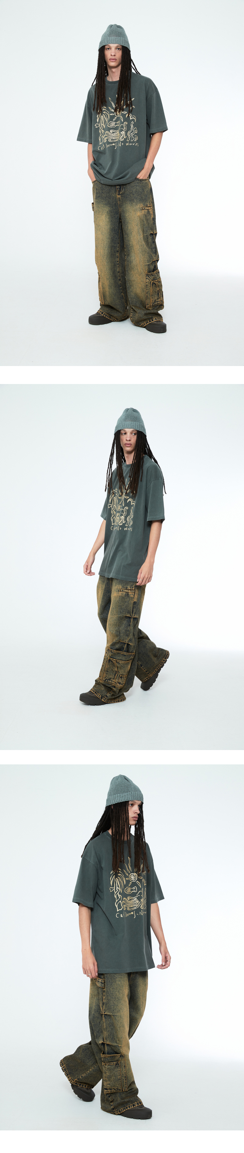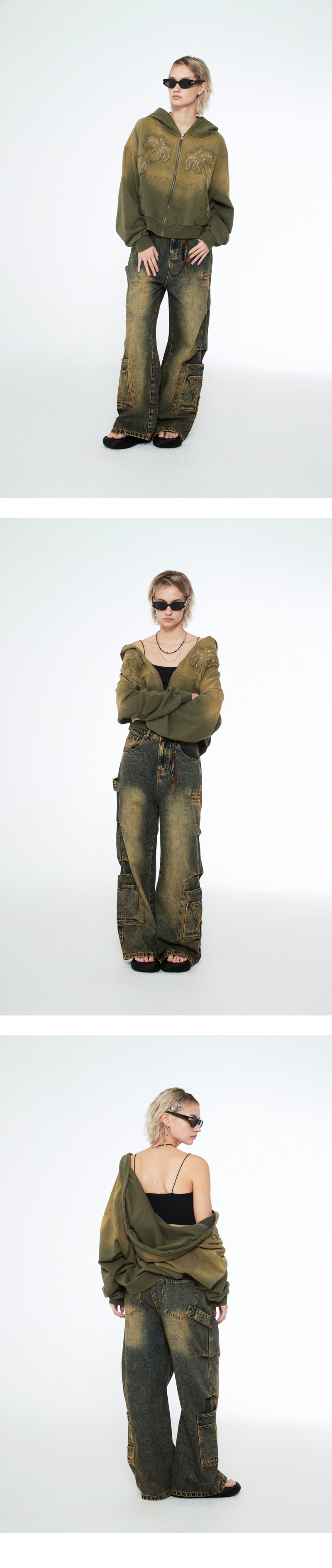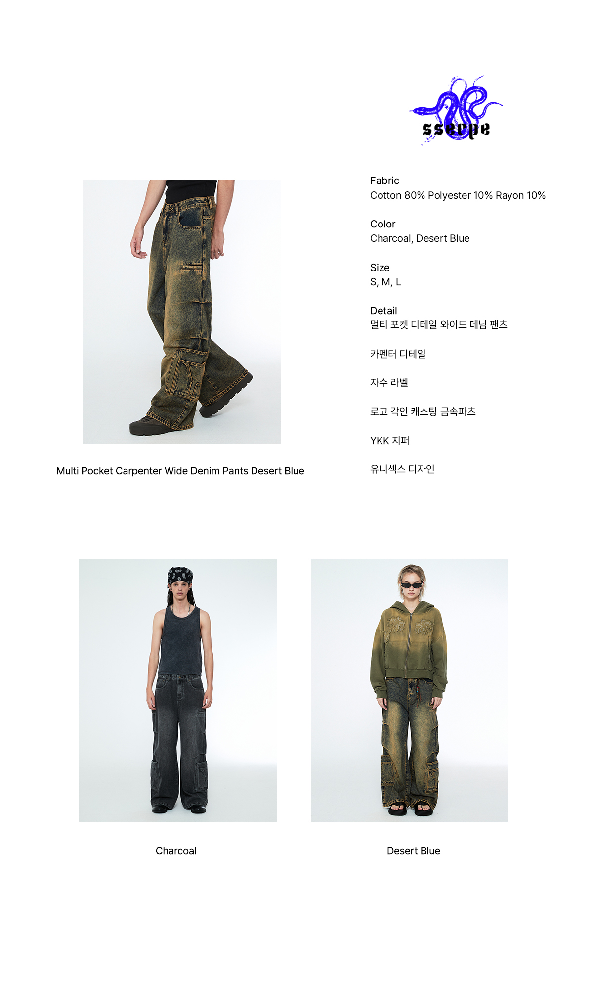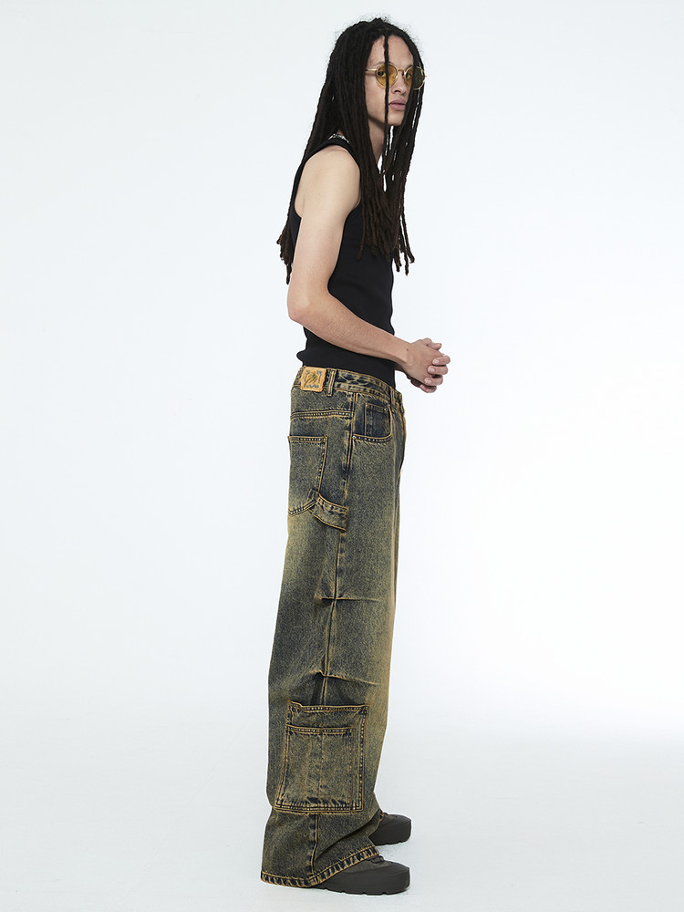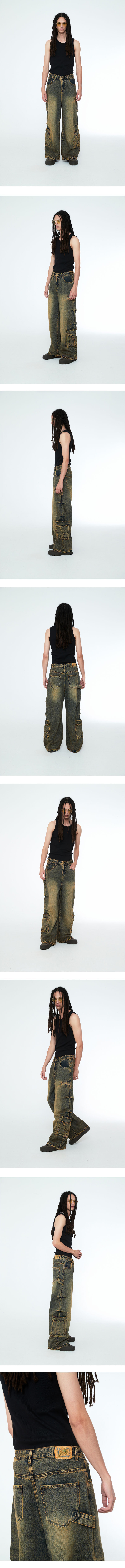 멀티 포켓 디테일 와이드 데님 팬츠