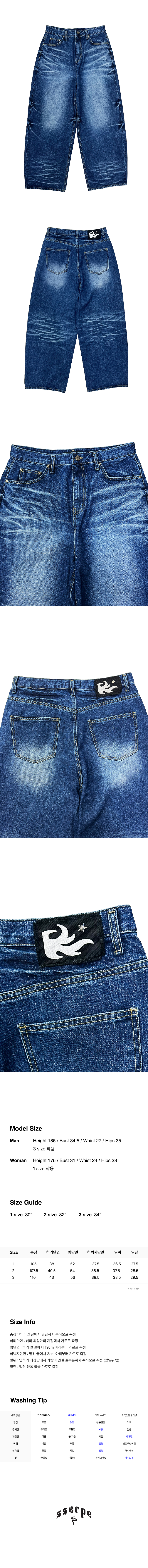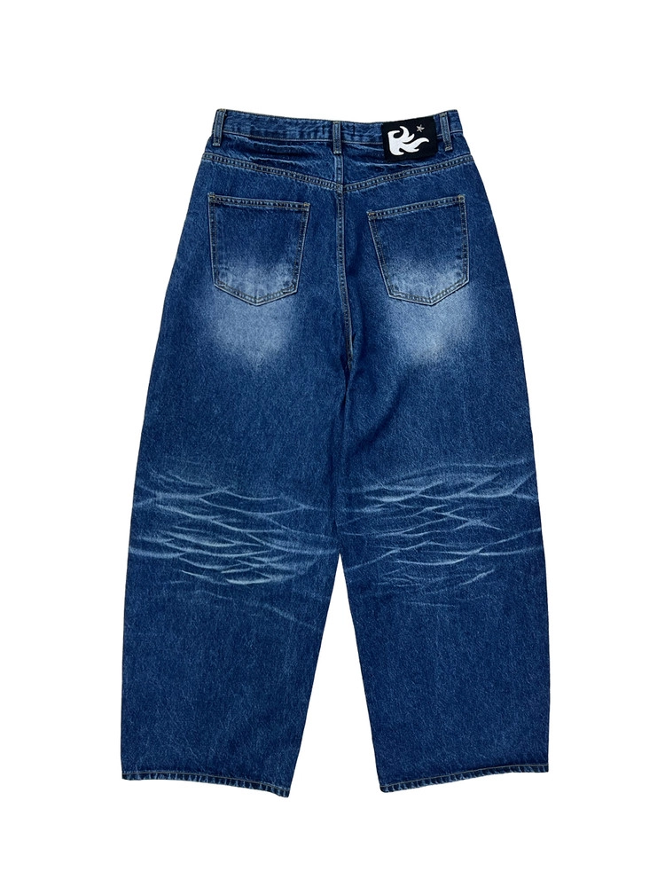 Starry Night Washed Wide Denim Pants Blue