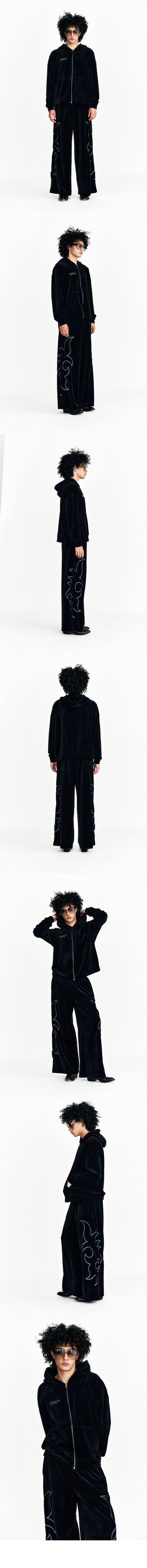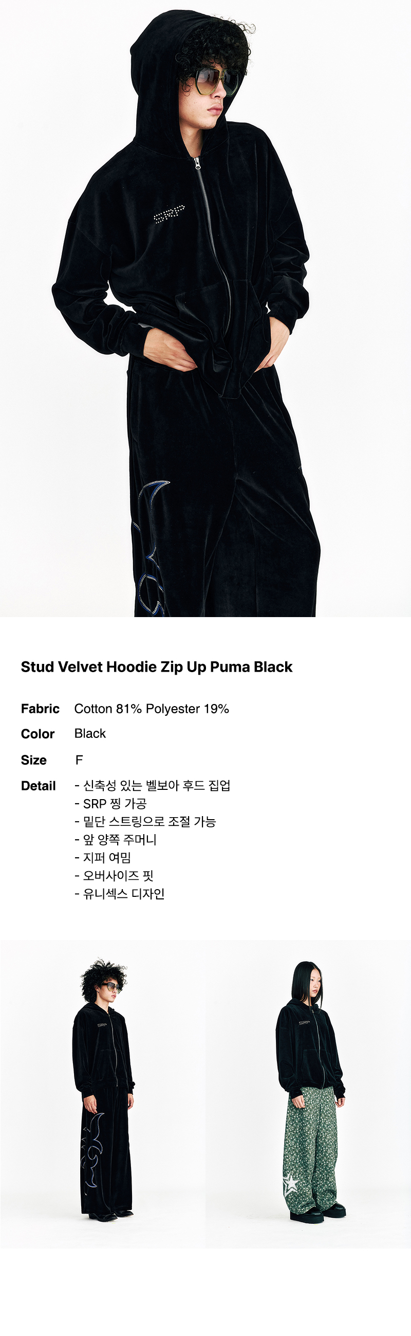 Stud Velvet Hoodie Zip Up Puma Black