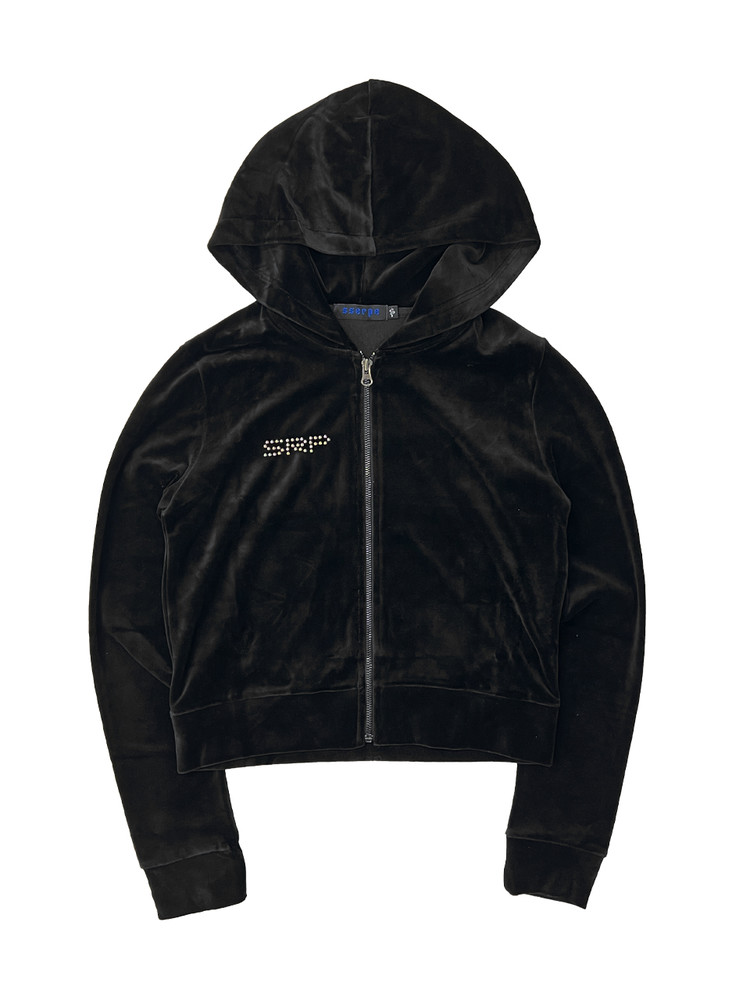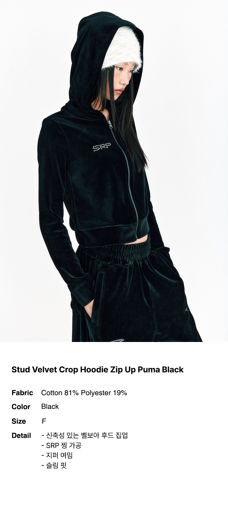 Stud Velvet Crop Hoodie Zip Up Puma Black