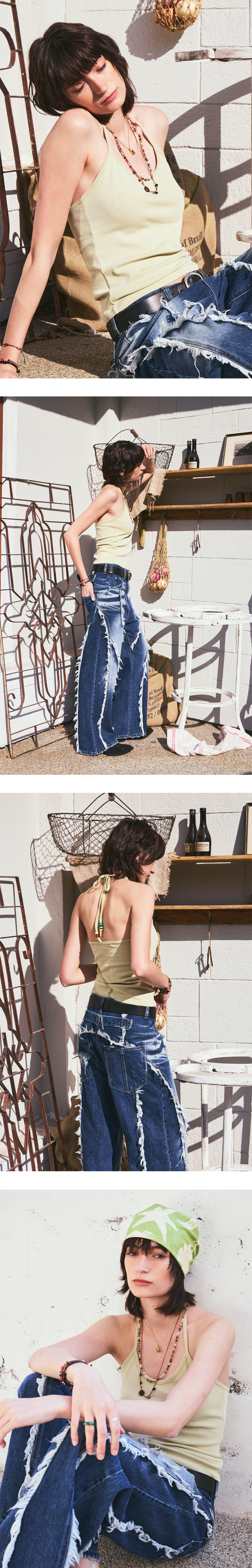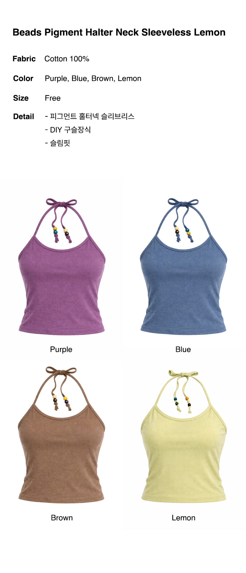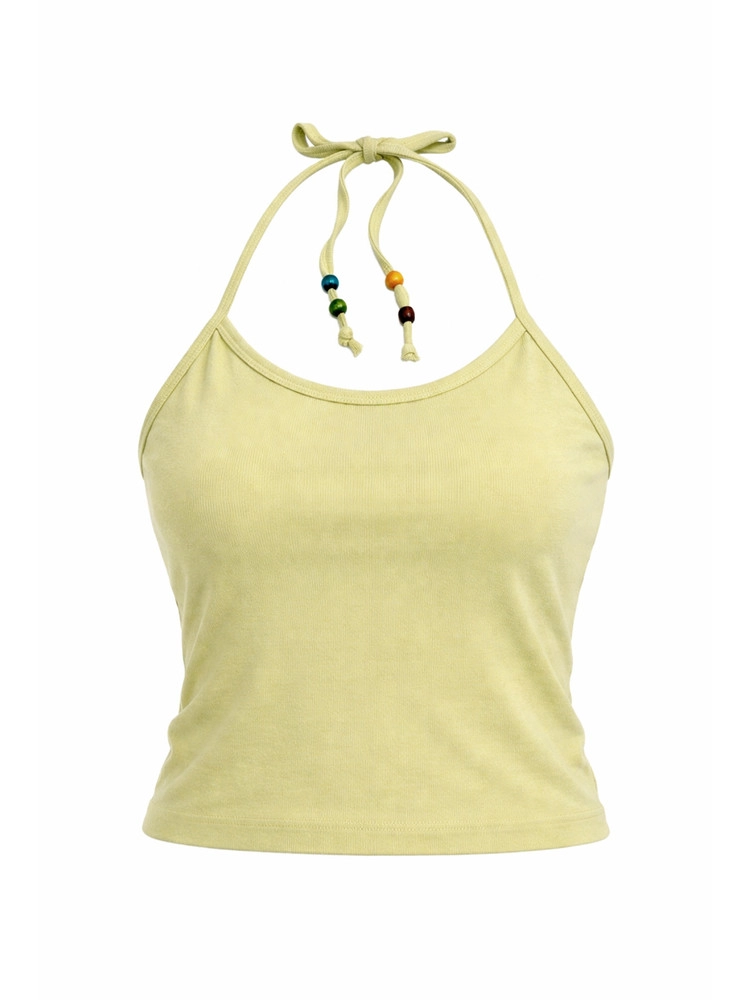 Beads Pigment Halter Neck Sleeveless Lemon